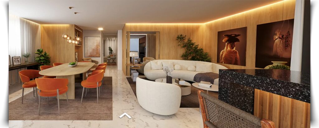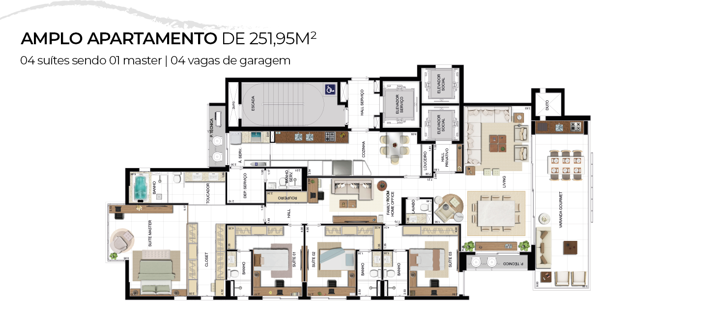 Os móveis, armários equipamentos, adornos, luminárias e materiais de acabamento presentes nas fotos das áreas comuns foram elaboradas tendo como referencia a sugestão de decoração do empreendimento, alguns dos itens destacados nas fotos poderão sofrer modificações por outros similares, sejam em razão da não fabricação ou de uma excessiva variação do valor do item. Dentro das unidades privativas, todos os itens constantes no material publicitário são apenas ilustrativos e não serão entregues com imóvel, sendo este entregue em formato shell, ou seja, no concreto, com alvenaria  de bloco cerâmico (Externo) drywall (paredes internas). As unidades privativas serão entregues nos termos do disposto no memorial de incorporação do empreendimento e no contrario de compra e venda da unidade imobiliária. O paisagismo e as plantas existentes nas fotos virtuais das áreas comuns são meramente ilustrativas e poderão sofrer alteração de quantidade, porte e tipo de plantas e arvores utilizadas nas utilizadas na ocasião da entrega do empreendimento. As perspectivas ilustram a vegetação com porte adulto, que será atingido após a entrega do empreendimento e de acordo com o Projeto de Paisagismo.  Por fim, as imagens possuem itens de uso e decoração que não serão entregues com o imóvel, servindo apenas de referência para decoração dos ambientes. Cidade limpa, não jogue este impresso em via pública.